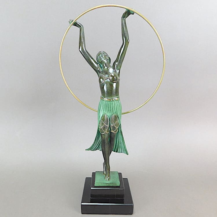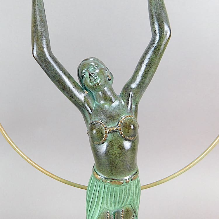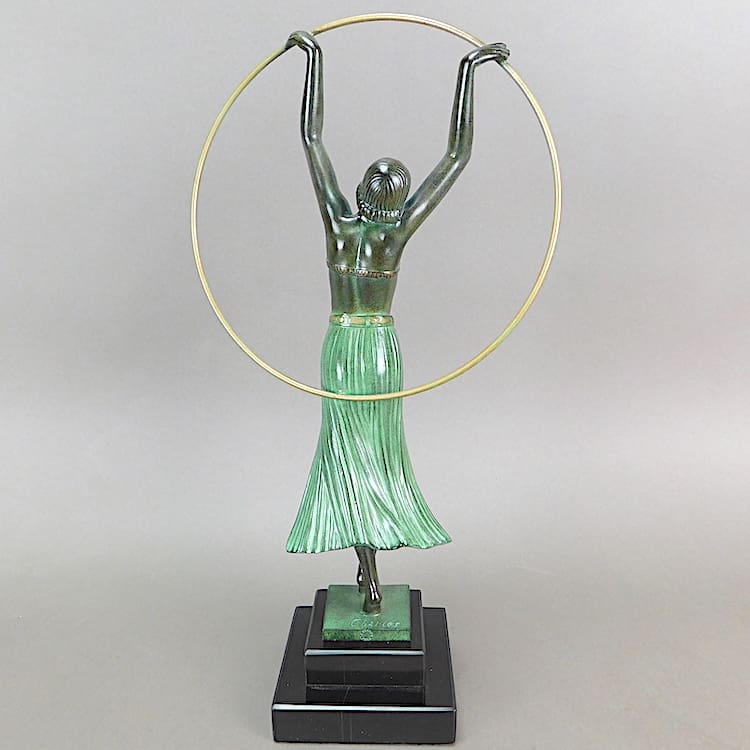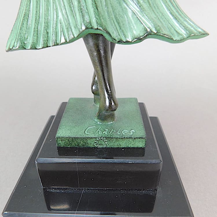 Small green patinated Art metal art deco statue designed by Charles Charles.