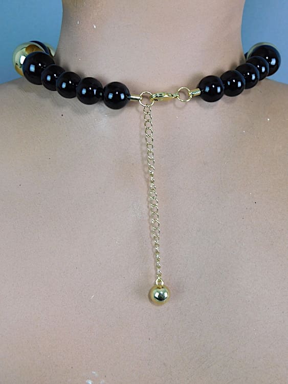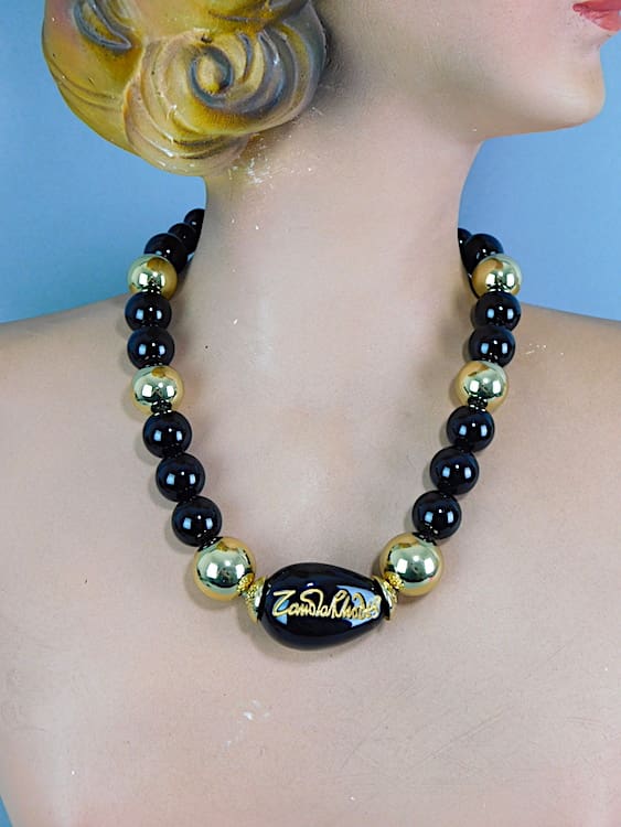 Rare gold and black chunky bead necklace, the central bead signed Zandra Rhodes.