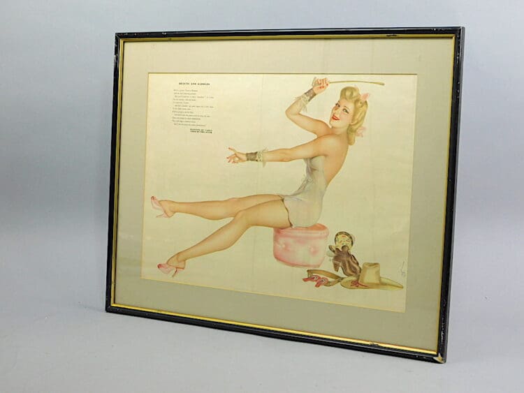 Another genuine centre fold by Alberto Varga from Esquire magazine dated November 1942. Artwork by Varga and verse by Phil Stack. Not sold as framed.