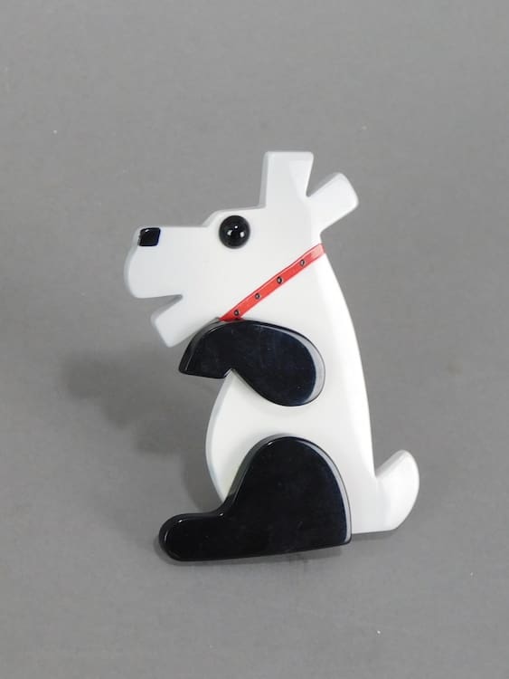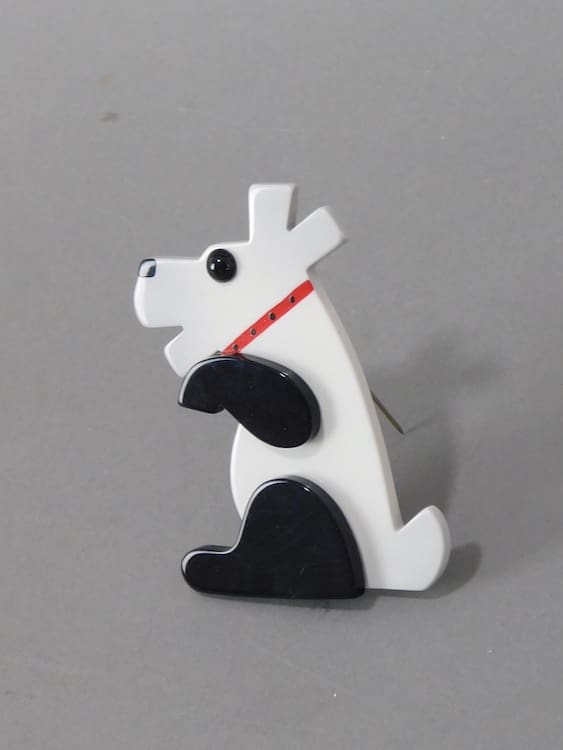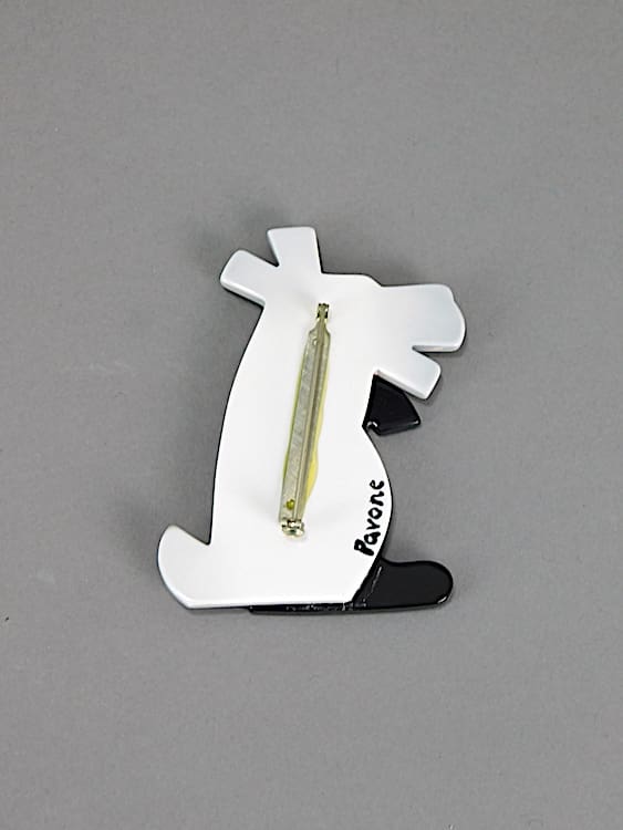 Black and white comical dog brooch by Lea Steins famous competitor Pavone.