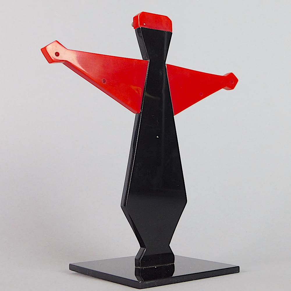 French phenolic and chrome bellhop earrings stand can hold 4 pairs of earrings, 2 pairs shown.