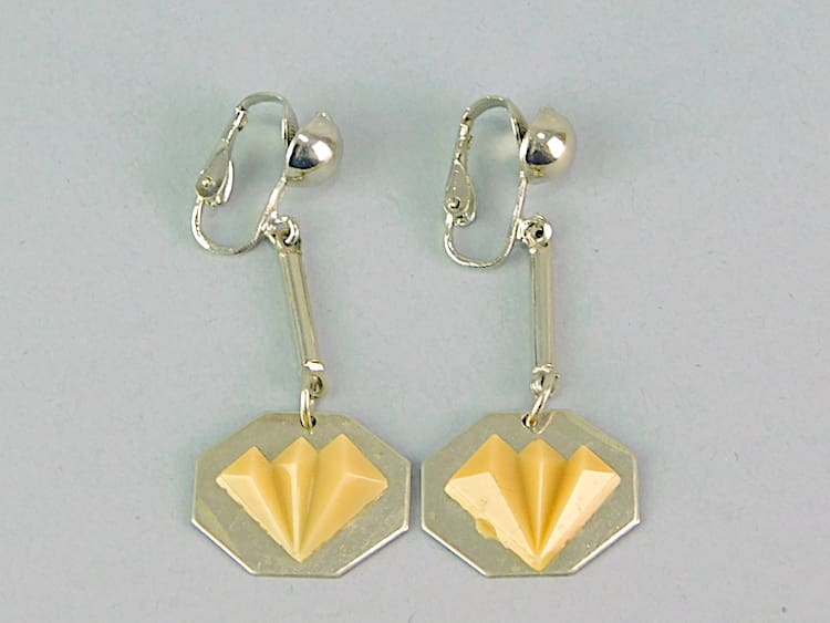 Early 1930’s galalith and chrome clip on earrings, made by the famous Jakob Bengel factory.