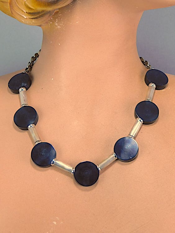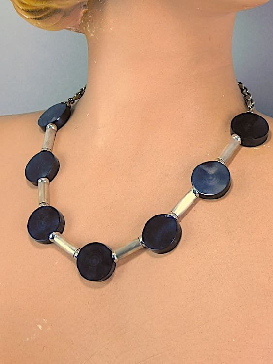 Black galalith and chrome necklace. Made in the early 1930’s by the Jakob Bengel company.