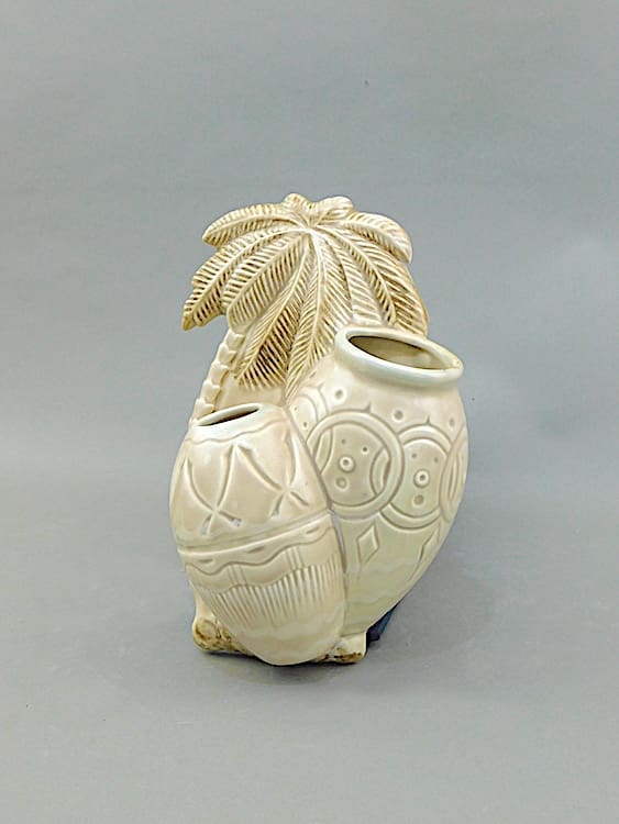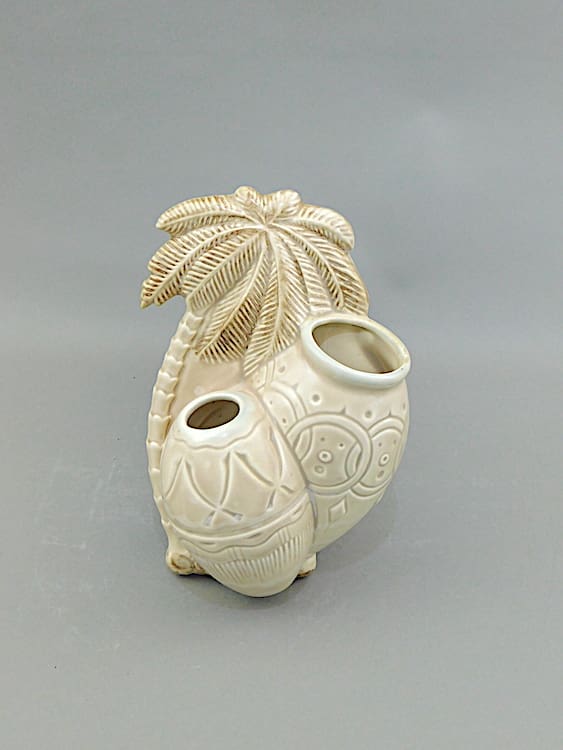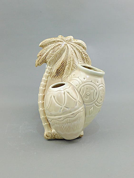 Lovely palm tree and drums wall pocket ‘Beswickware’, Made in England’ to back. c1940. Mottled brown/beige glaze and detailing.