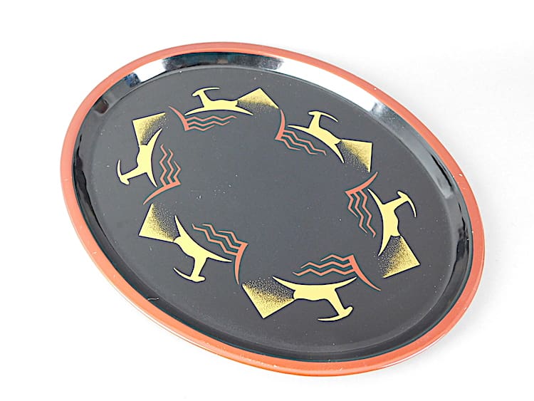 Vintage 1960s metal art deco leaping deer tray. Made for the Biba store in Kensington by Elite Trays, it still bears the makers label and is stamped Biba to the underside.