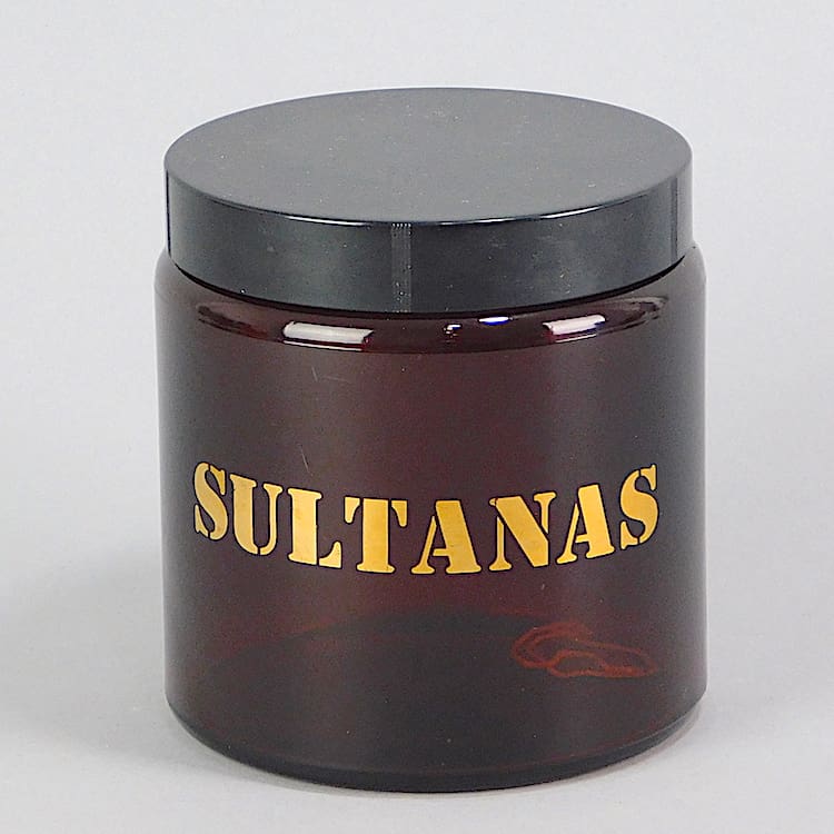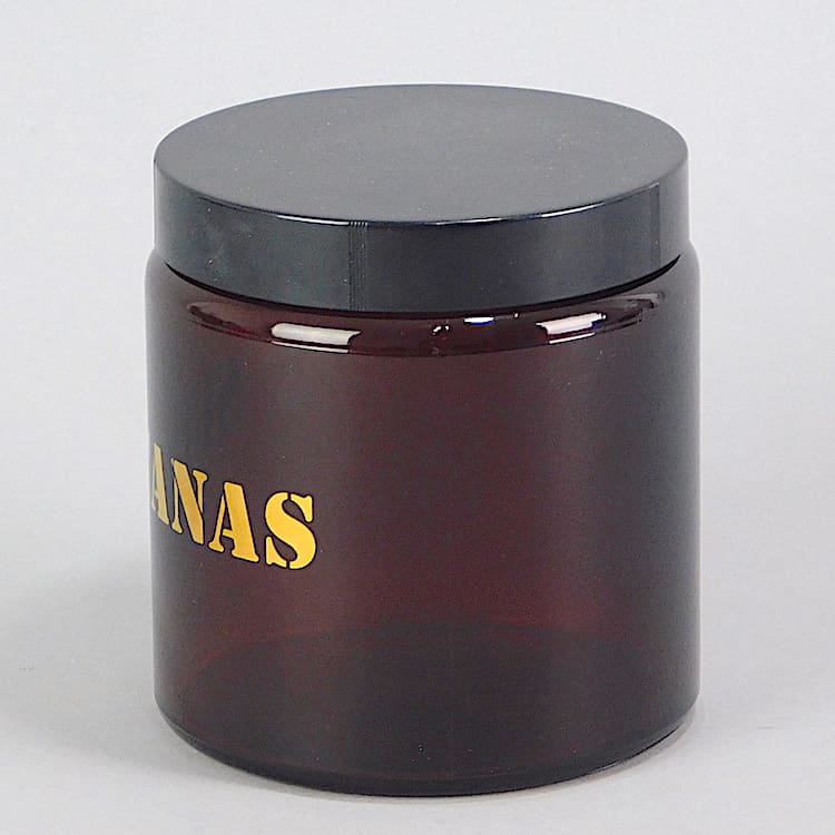 Original 1960s Biba sultana Jar in brown glass with gold lettering.