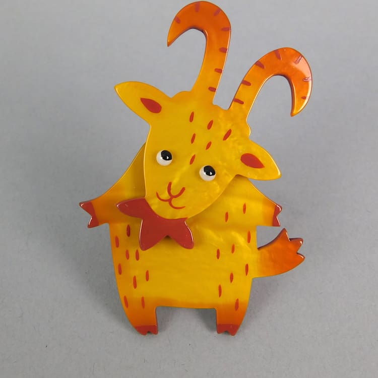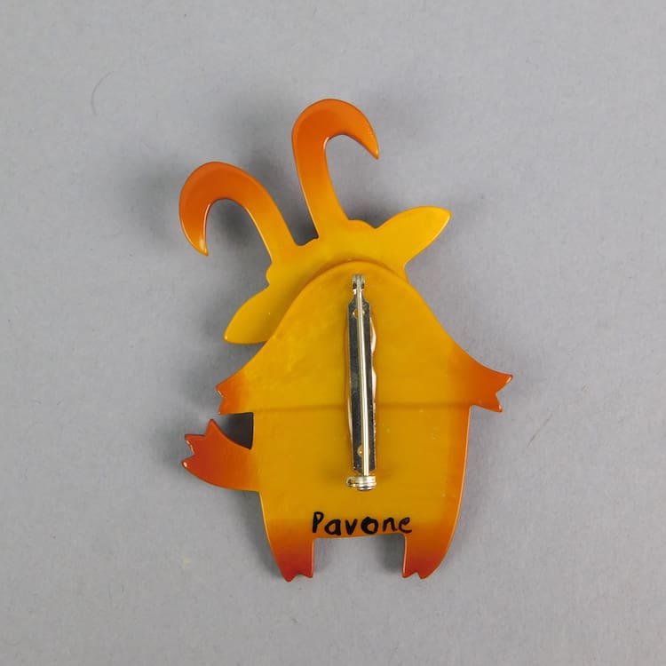 Vintage galalith, hand painted and hand made goat brooch by Pavone.