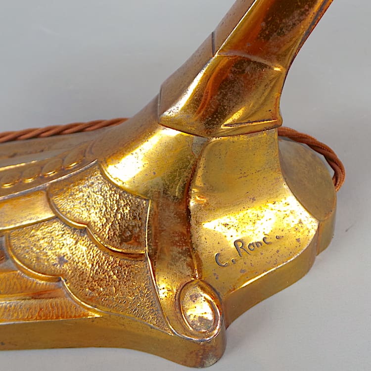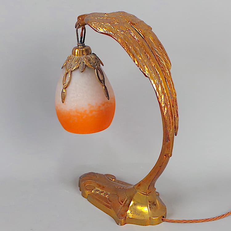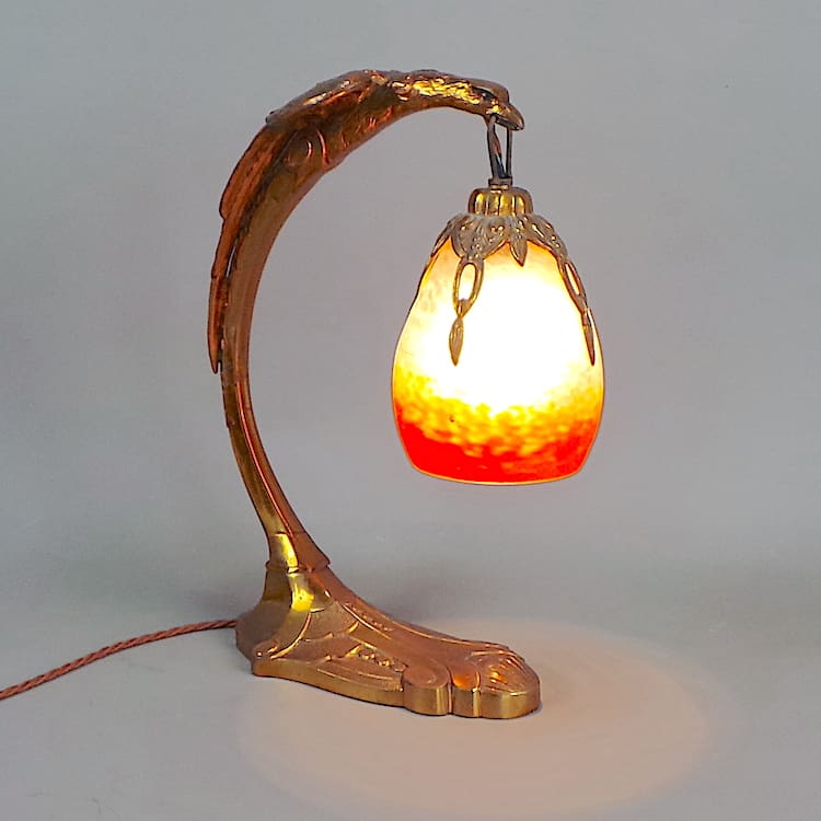 Holding a Pate De Ver signed “rethondes” glass shade with a pendant collar.