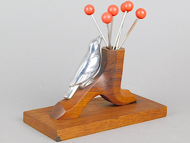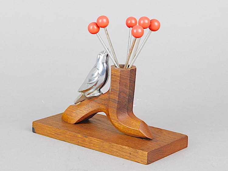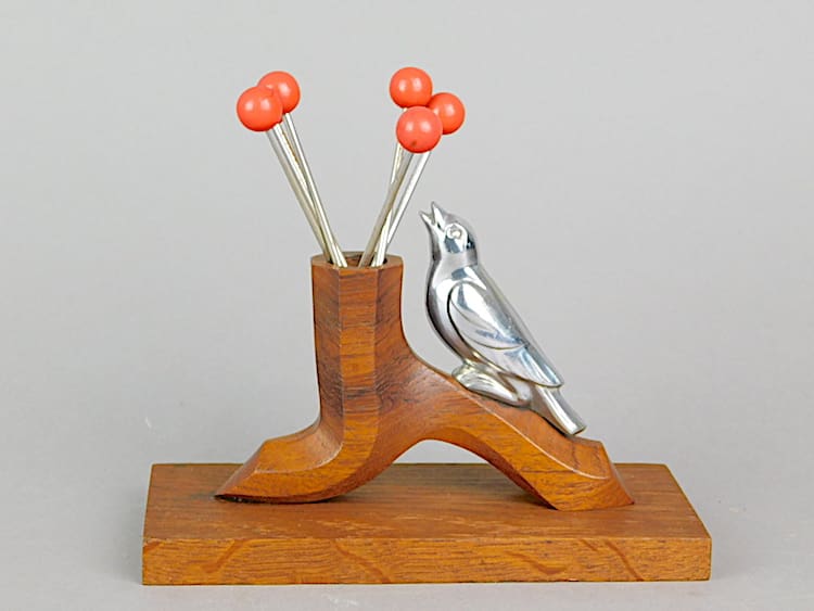 Lovely French cocktails sticks set in stylised chrome on a tree with 6 cherry cocktail sticks.