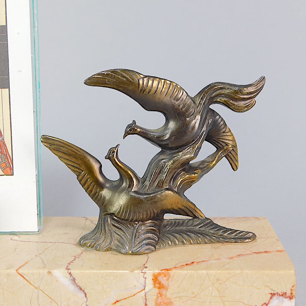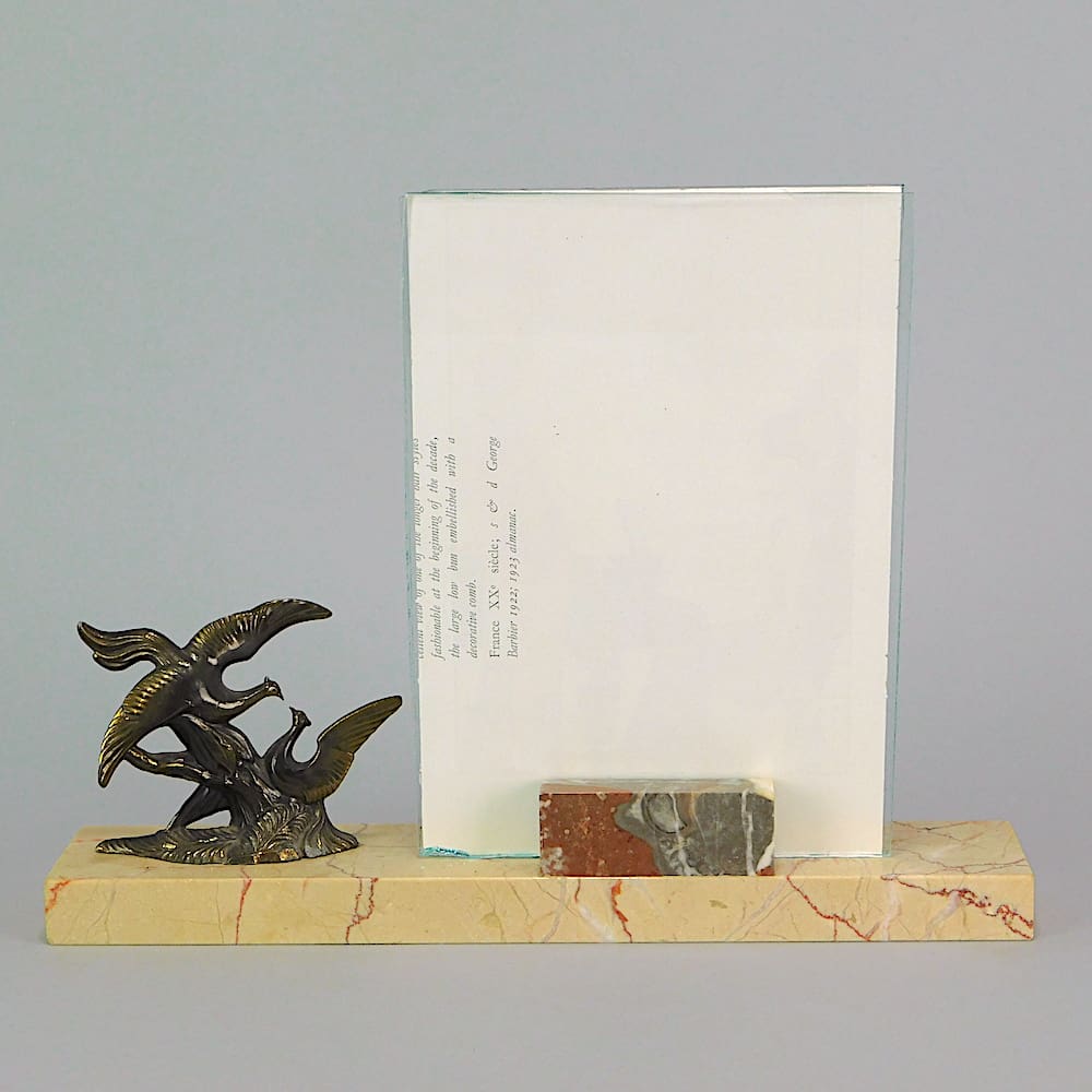 French spelter and marble birds photo frame.