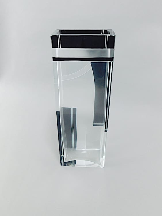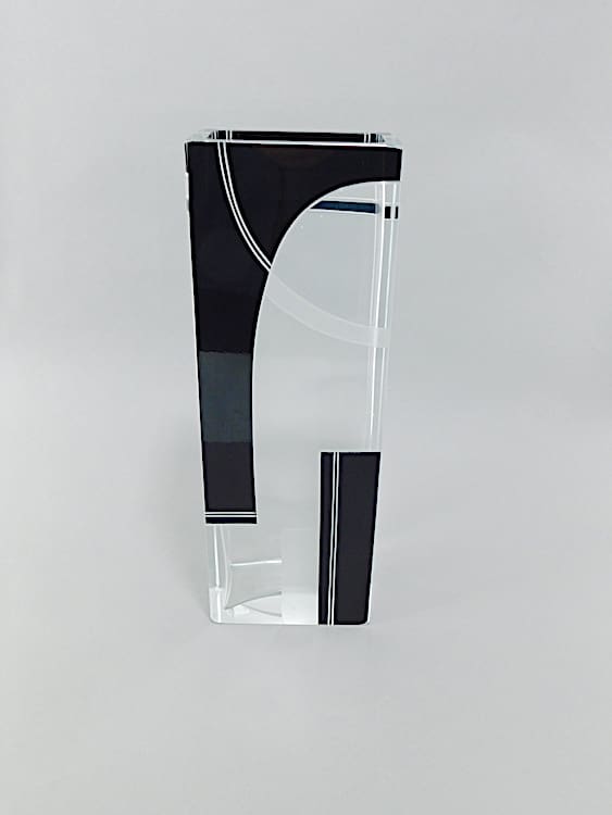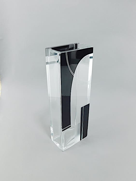 Modernist geometric acid etched and black enamel vase.