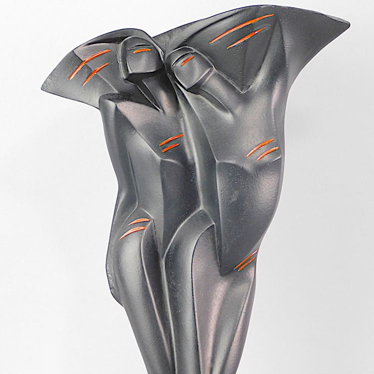 Black with red detail crystical cubist double ladies statue. Originally made as a bust (as seen here) or as a ceramic vase. Made in 1986, signed and dated to the rear.