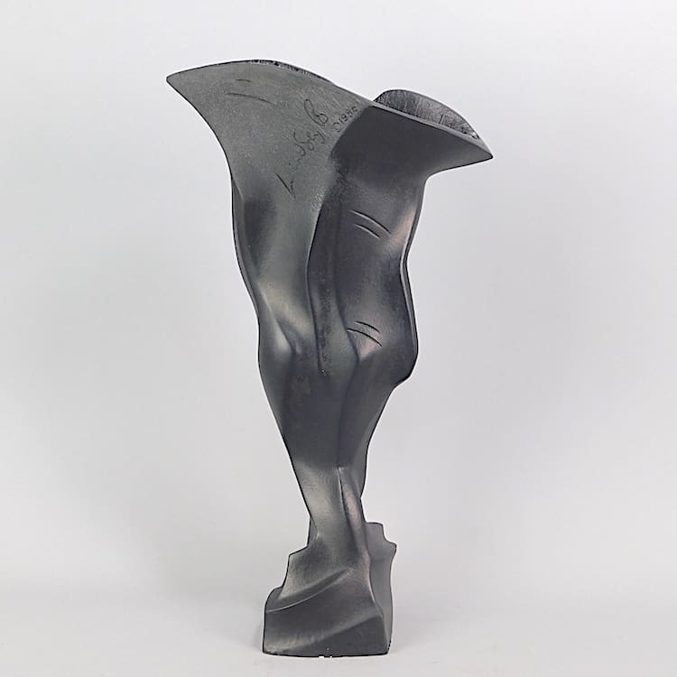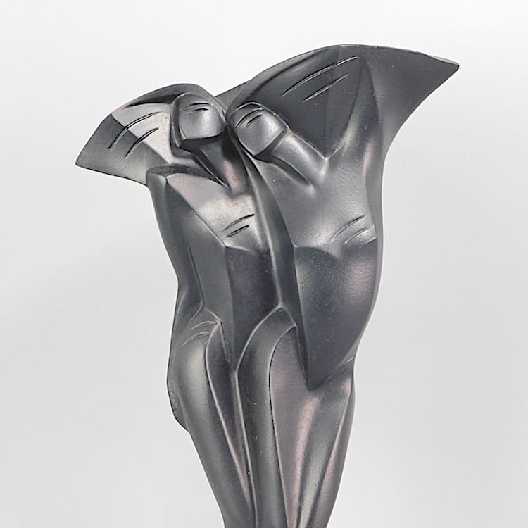 Black crystical cubist double ladies statue. Originally made as a bust (as seen here) or as a ceramic vase. Made in 1986, signed and dated to the rear.