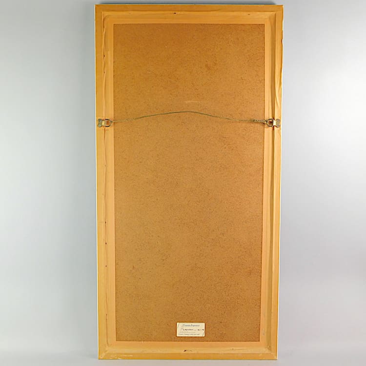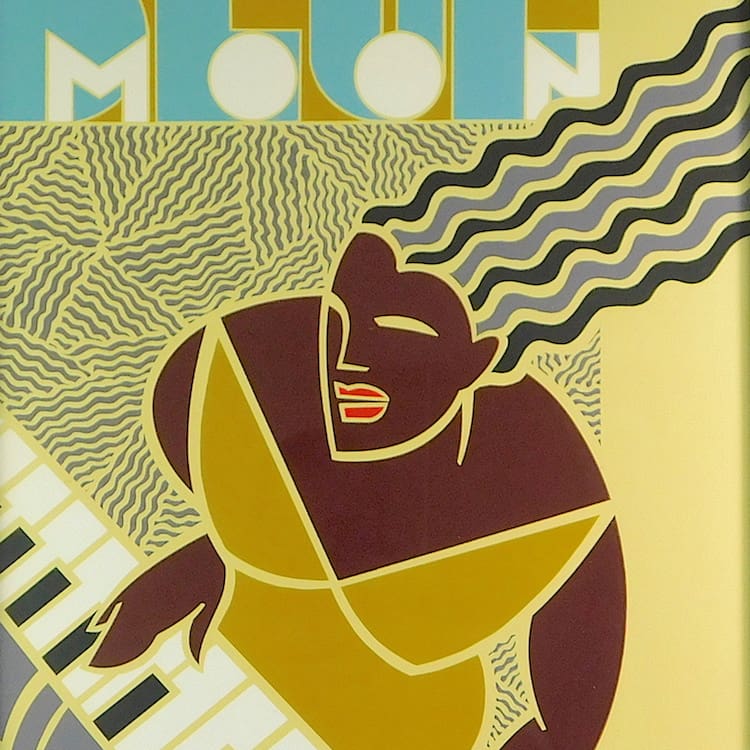 1980s Lady at the Piano Blue moon poster print. Mounted in a tall cream wooden frame.