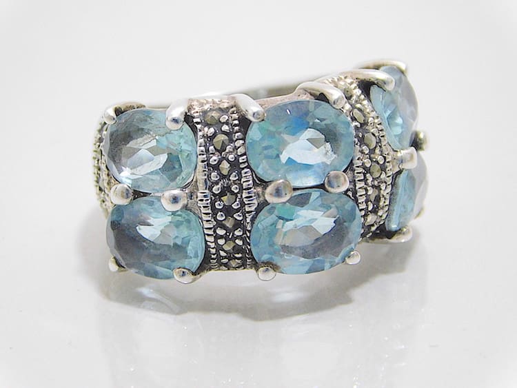 Contemporary silver and blue glass ring.