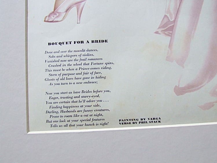 Another genuine centre fold by Alberto Varga from Esquire magazine dated June 1941. Currently unframed. Artwork by Varga and verse by Phil Stack.
