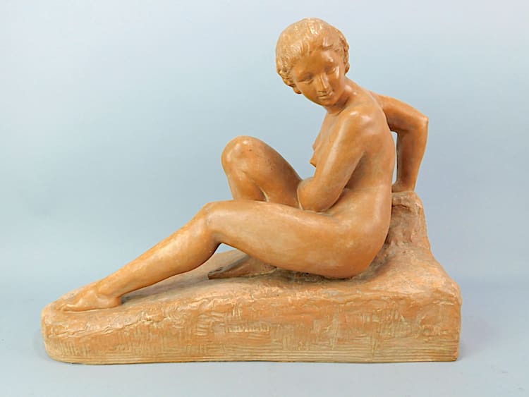 A large and lovely terracotta lady by Marcel Bouraine and signed.