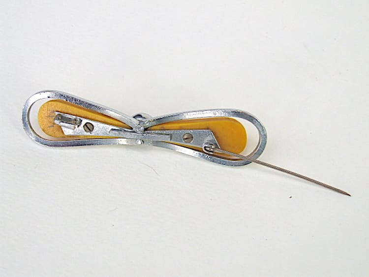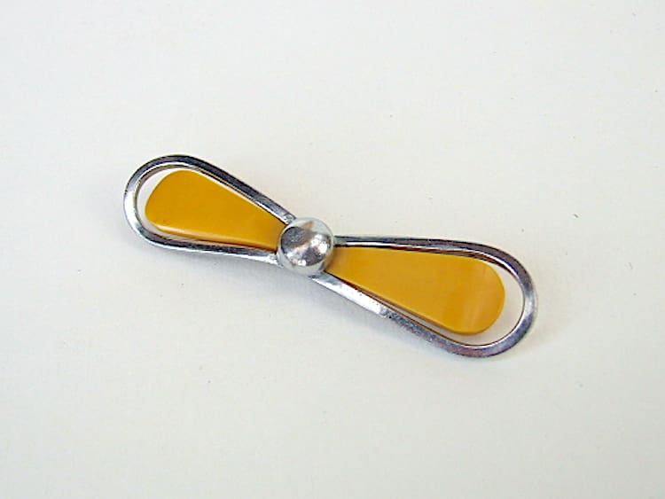 Early 1930’s Jakob Bengel yellow galalith bow brooch.