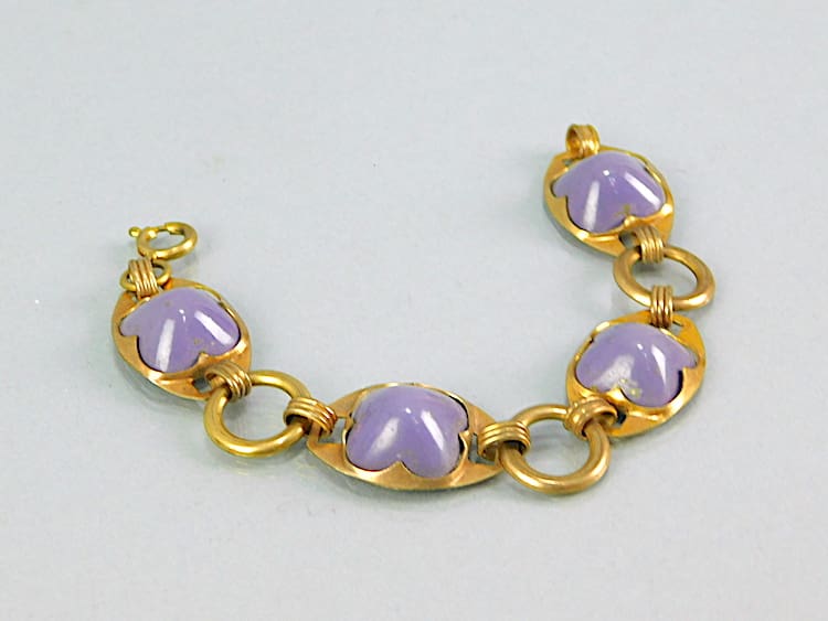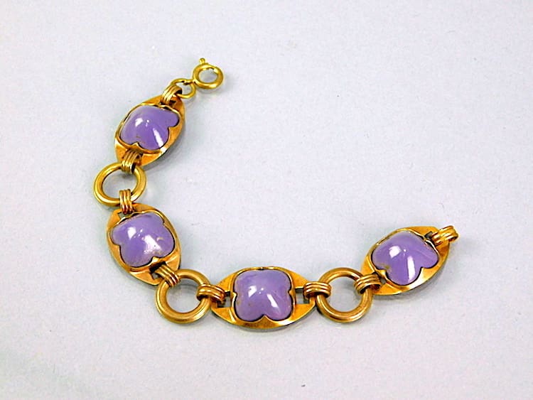 Guilt metal and purple galalith bracelet, made in the early 1930’s by Jakob Bengel.