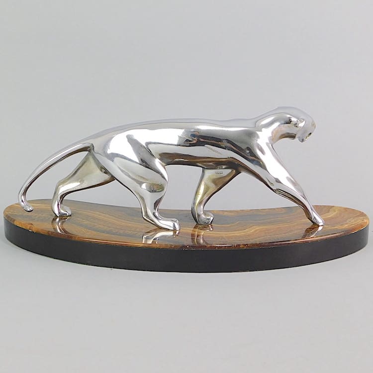 Large stylised chromed bronze art deco panther statue by Belgiam artist Michel Decoux.
