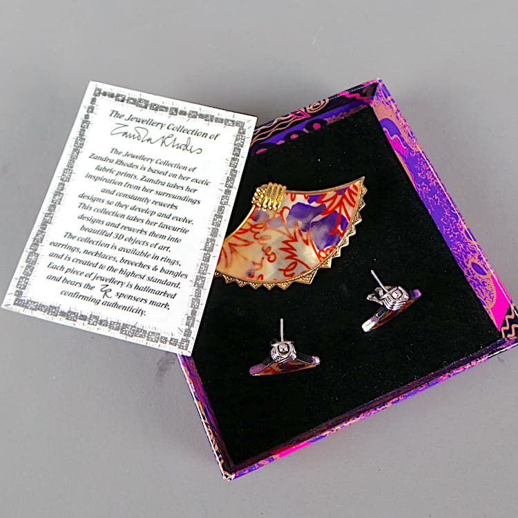 Art deco brooch and earring set by Zandra Rhodes.