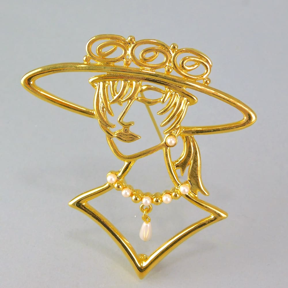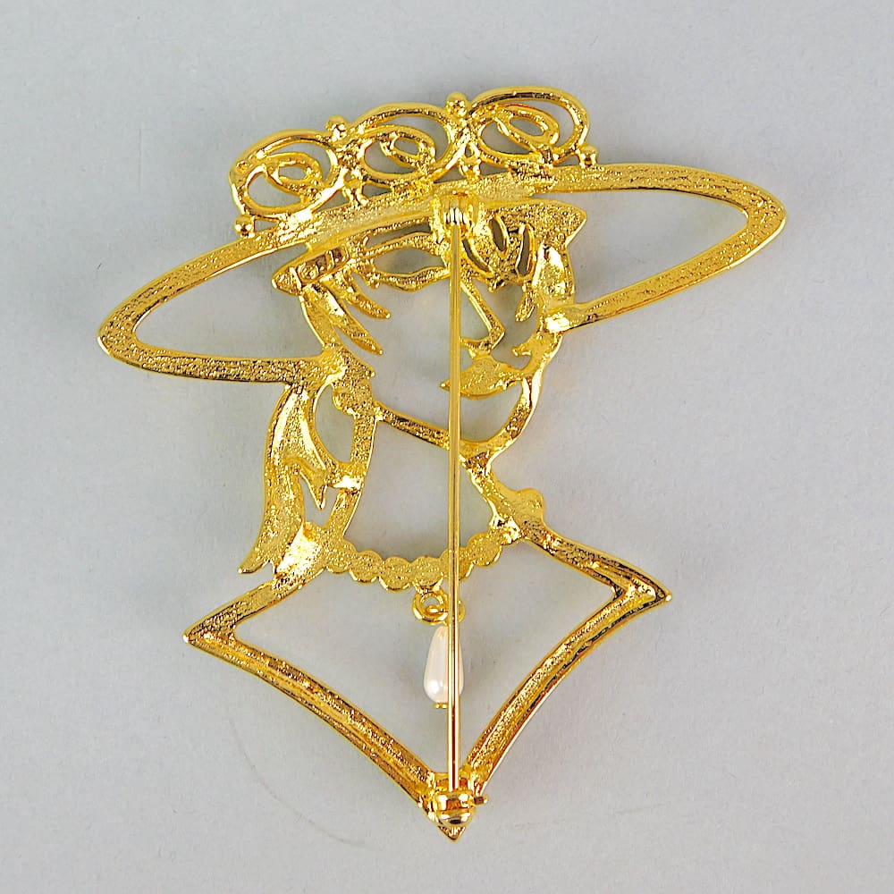 Lady brooch by JJ. Vintage USA brooch, signed to the reverse. Fitted with roll safety clasp.