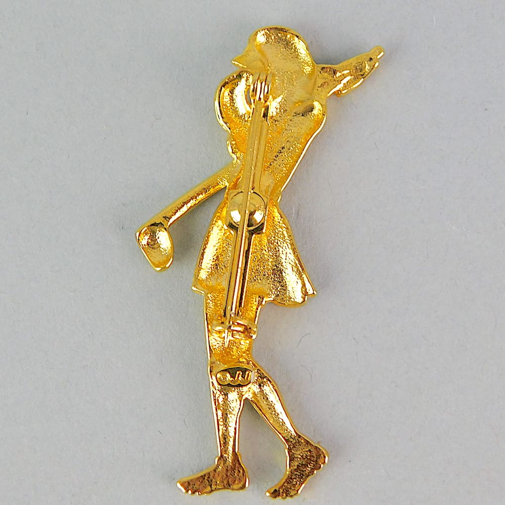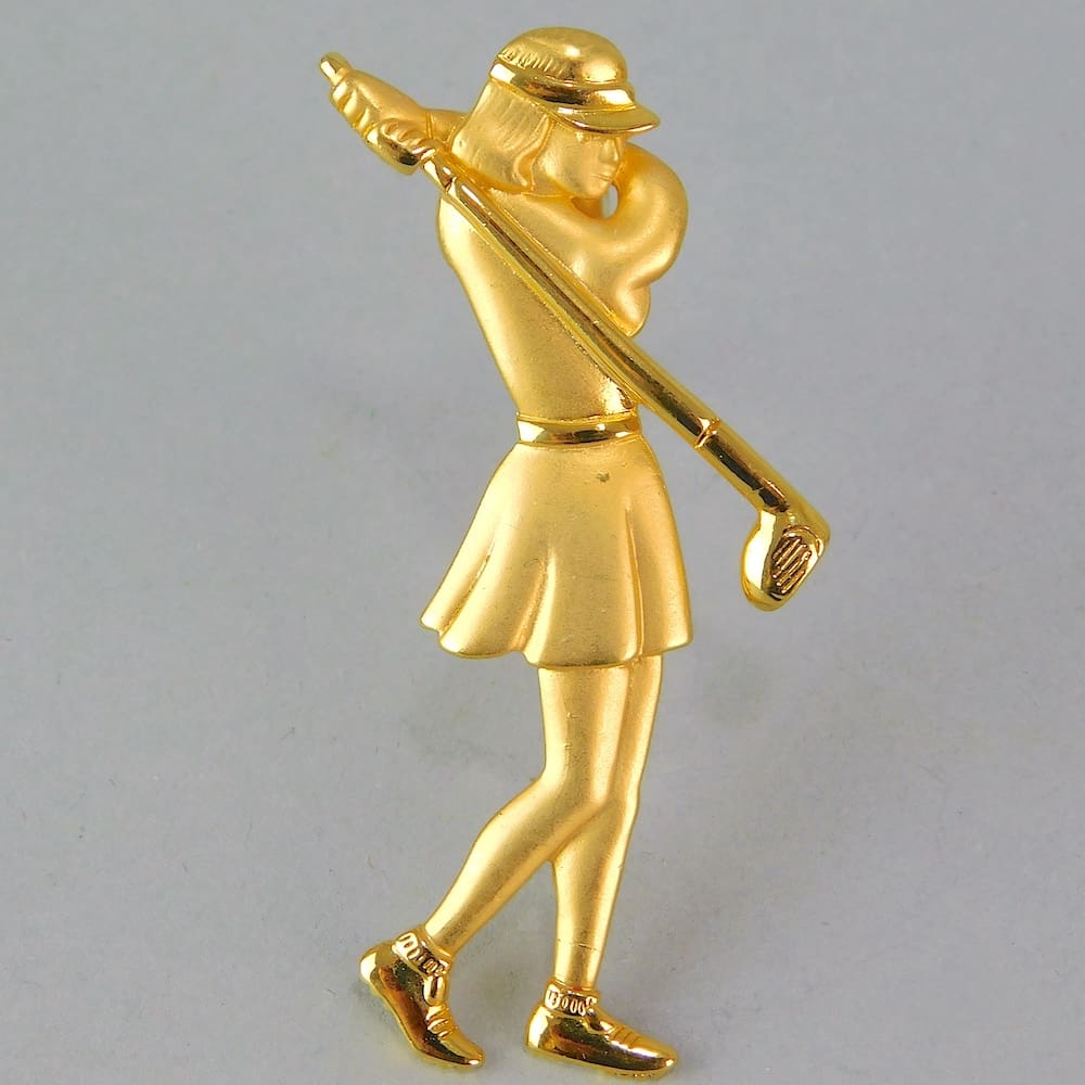 Lady Golfer brooch by JJ. Vintage USA brooch, signed to the reverse. Fitted with roll safety clasp.