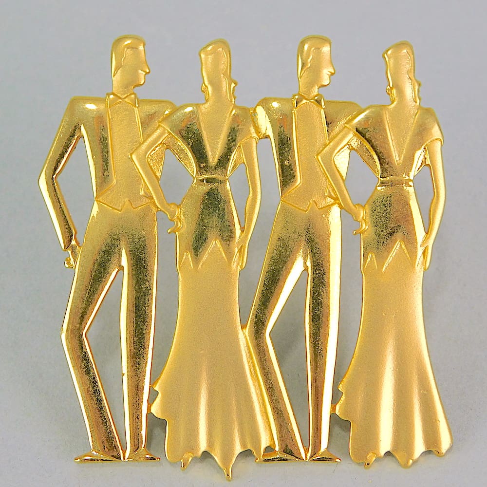 Party group brooch by JJ. Vintage USA brooch, signed to the reverse. Fitted with roll safety clasp.