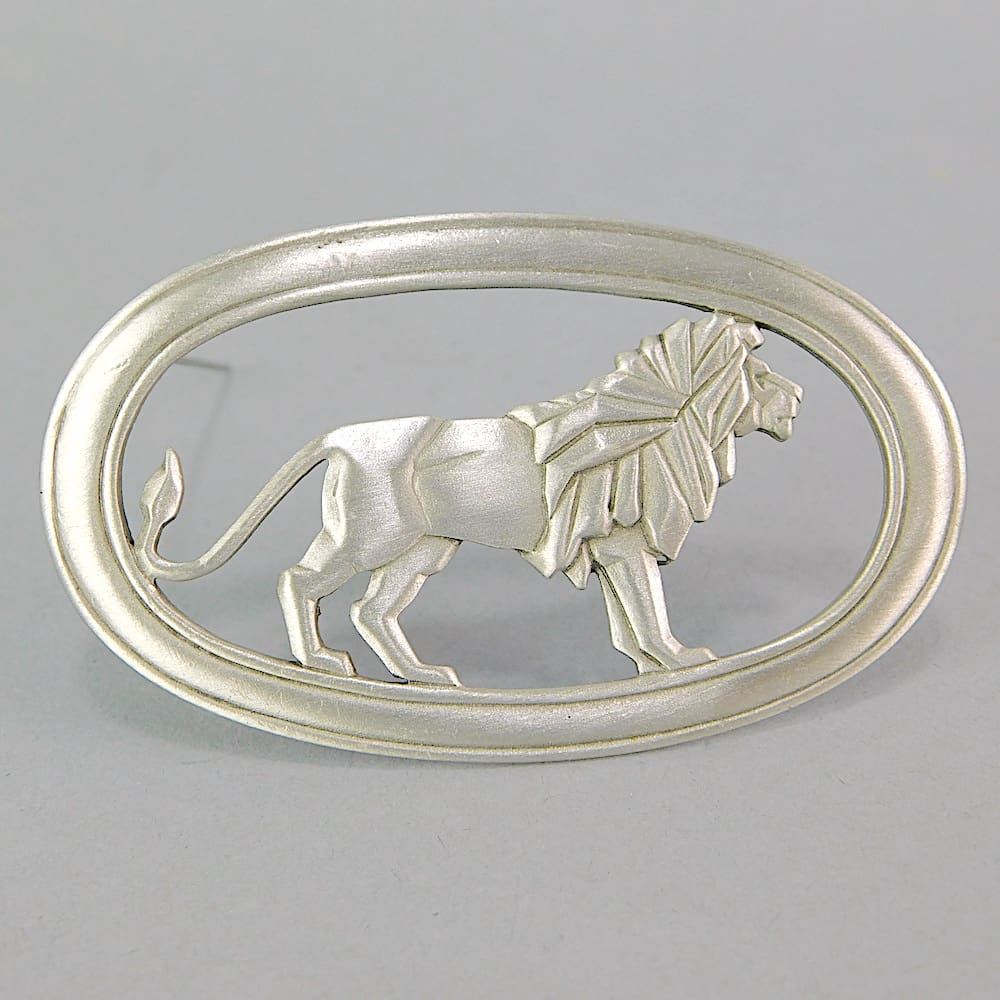 Lion brooch by JJ. Vintage USA brooch, signed to the reverse. Fitted with roll safety clasp.