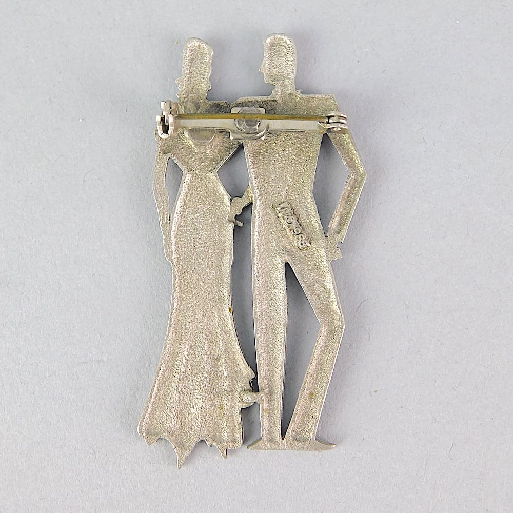 Pewter metal brooch by JJ. Vintage USA brooch, signed to the reverse. Fitted with roll safety clasp.