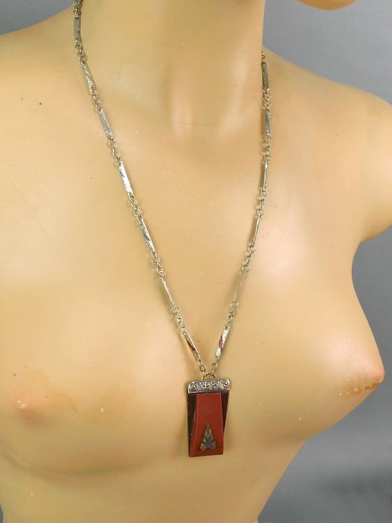Lovely Brown galalith pendant with filigree pattern top and enamelling to the chain.