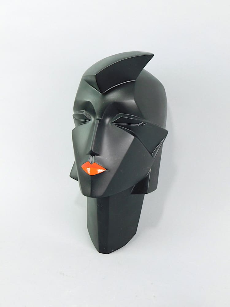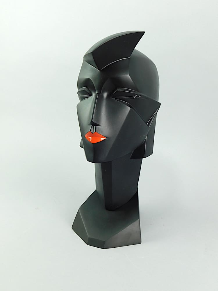 An unsigned neoplastic bust by Lindsey B. Made in an art deco style to display glasses on as it has ridges to the ears and nose.