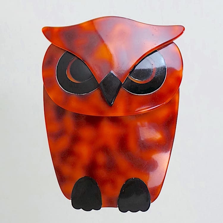 Buba Owl brooch by Lea Stein. Signed on the clasp.
