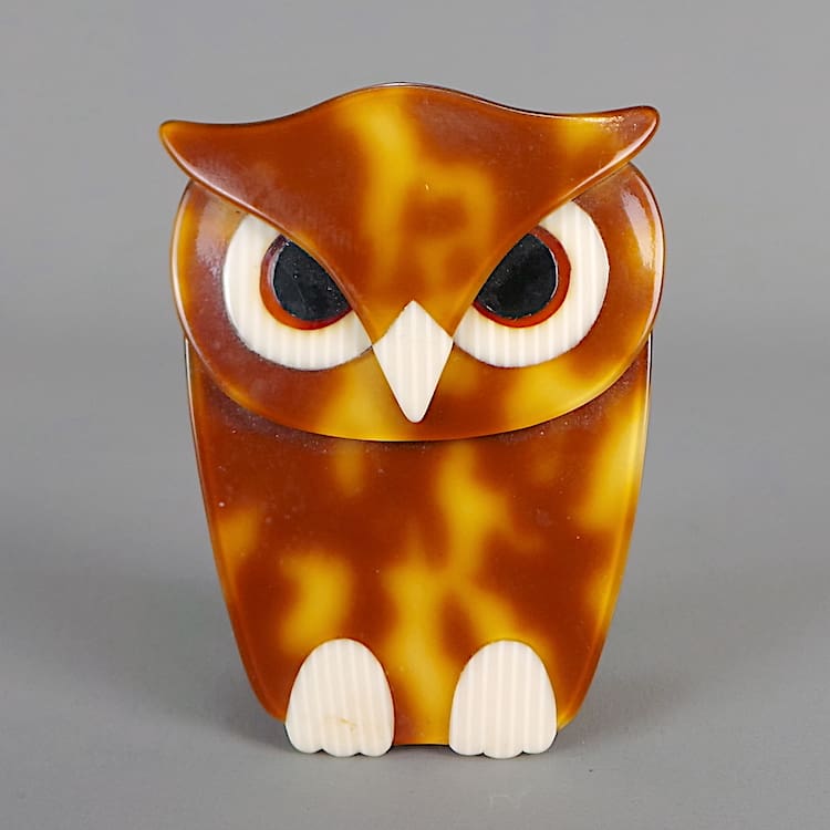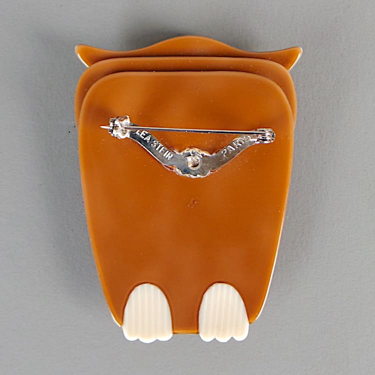 Buba Owl brooch by Lea Stein. Signed on the clasp.