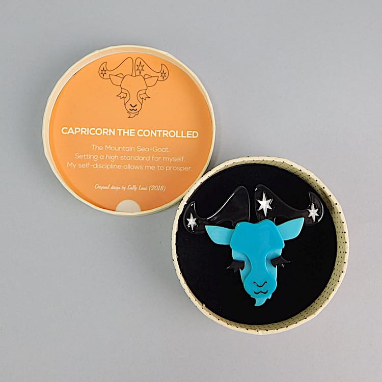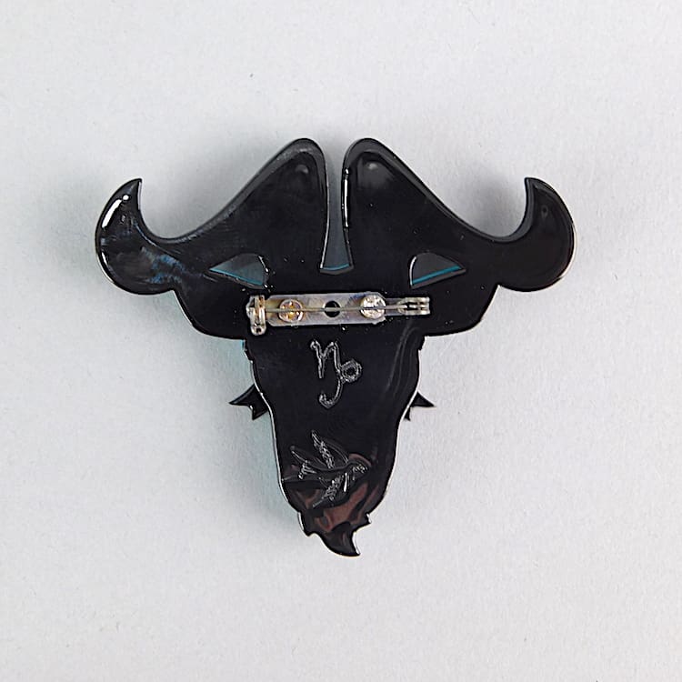 Capricorn goat brooch by Erstwilder. Stamped with the Erstwilder bird mark, comes in its original box with tag and fitted with a safety clasp.