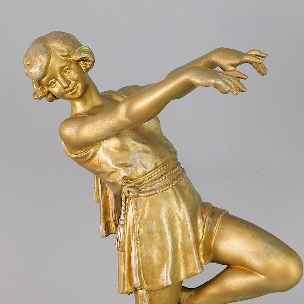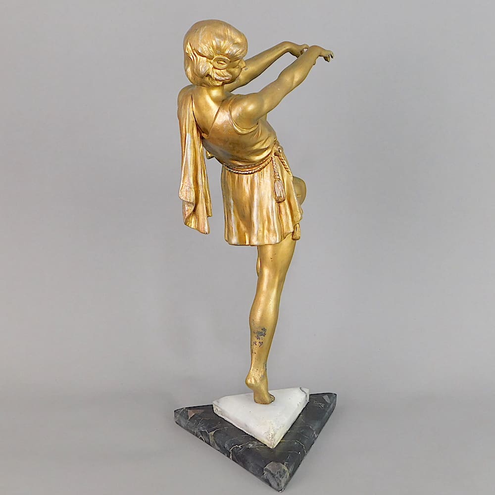 A French spelter lady toga dancer, similar to the Godard bubble-dancer and probably modelled on the same theatrical performance.