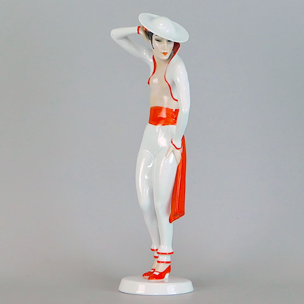 Beautiful art deco hand painted ceramic statue by Schwartzkopff for Rosenthal.