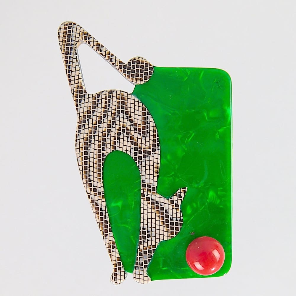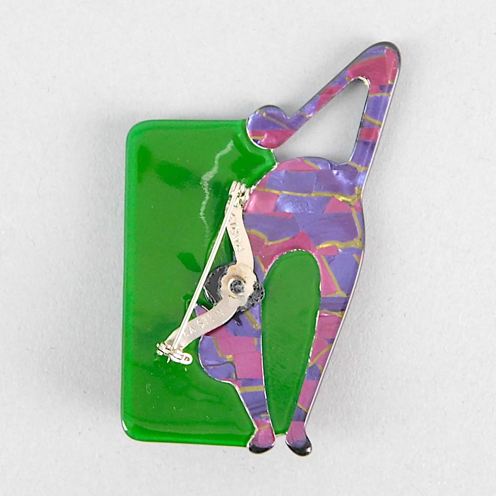 Lea Stein cat and ball brooch. Signed on the safety V clasp. First produced in the 1990’s.