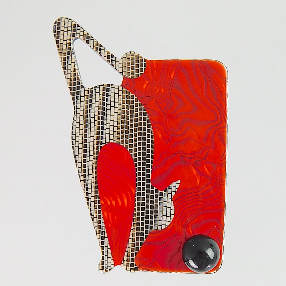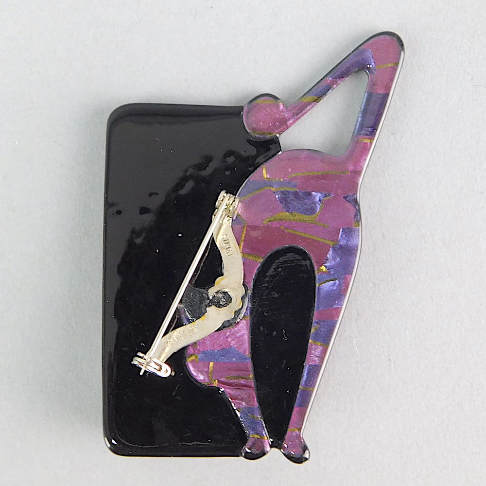 Lea Stein cat and ball brooch. Signed on the safety V clasp. First produced in the 1990’s.
