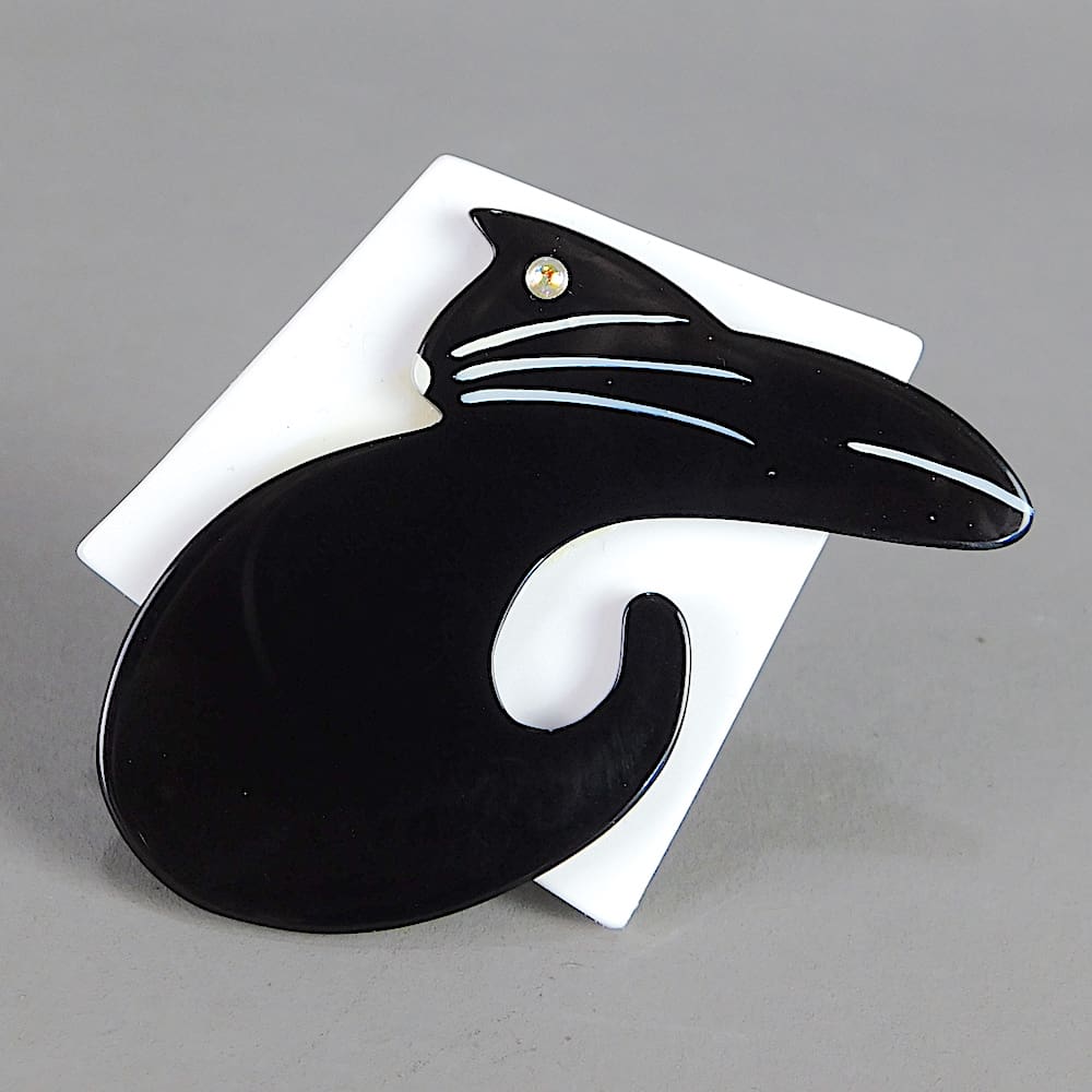 French bakelite brooch made by Marie-Christine Pavone and signed to the back Fitted with a roll safety clasp.