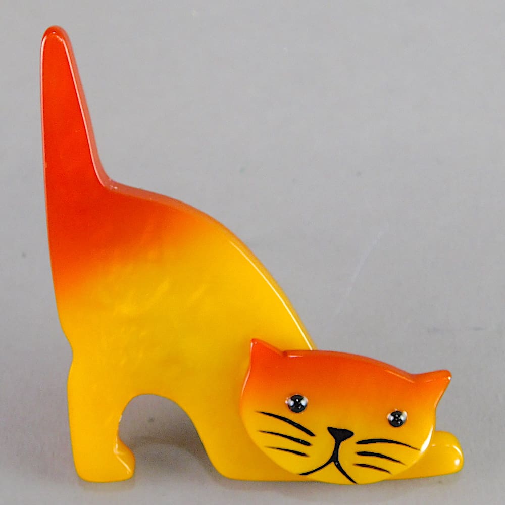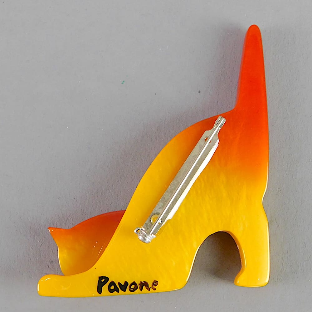 French bakelite brooch made by Marie-Christine Pavone and signed to the back. Fitted with a roll safety clasp.