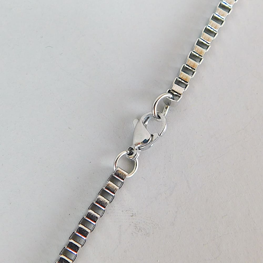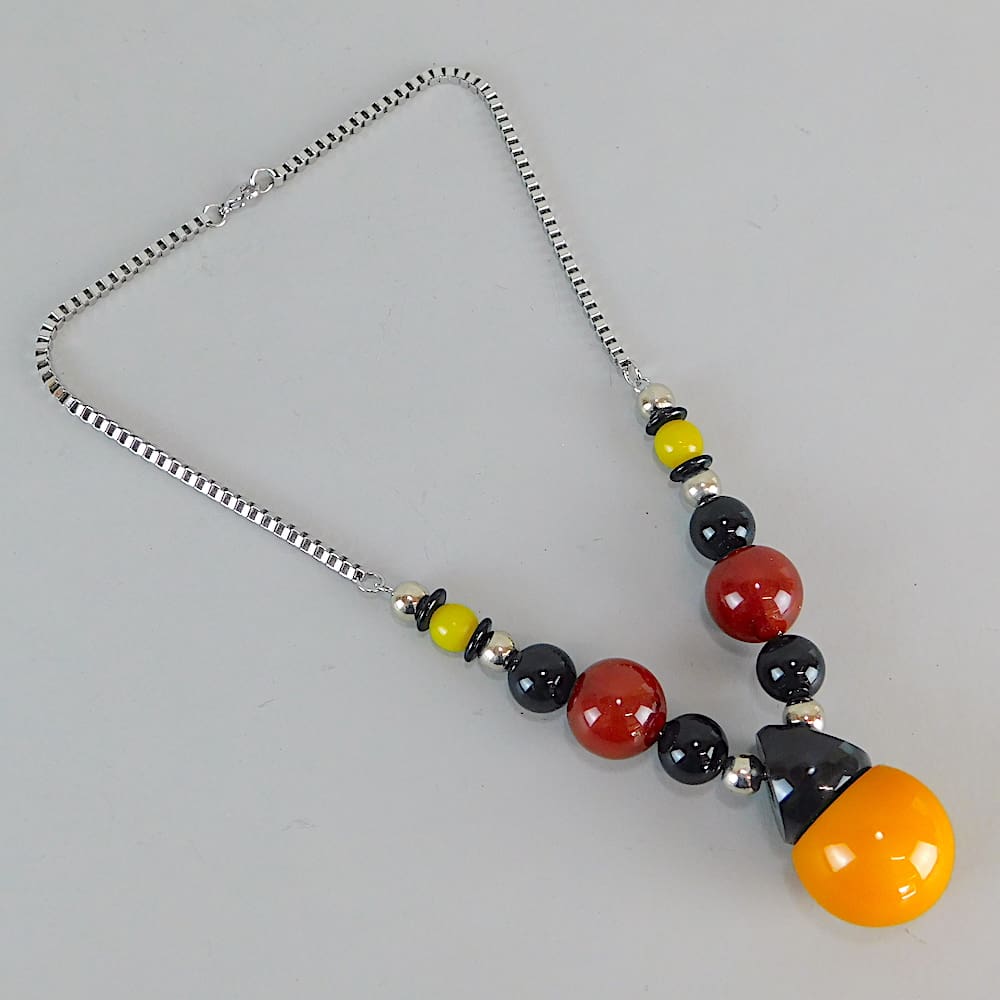 Modernist art deco Catalyn necklace with chromed metal chain.
