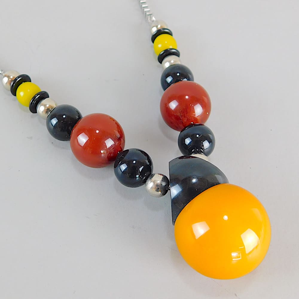 The central vintage Catalyn amber bead measures 1.75 inches (4.5cm) high.