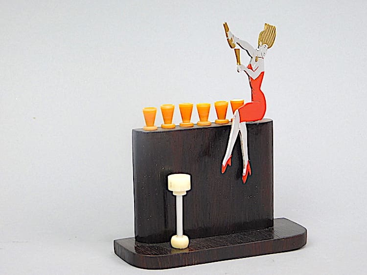An unsigned Sudre with 6 phenolic glasses on the bar that are the cocktail sticks.