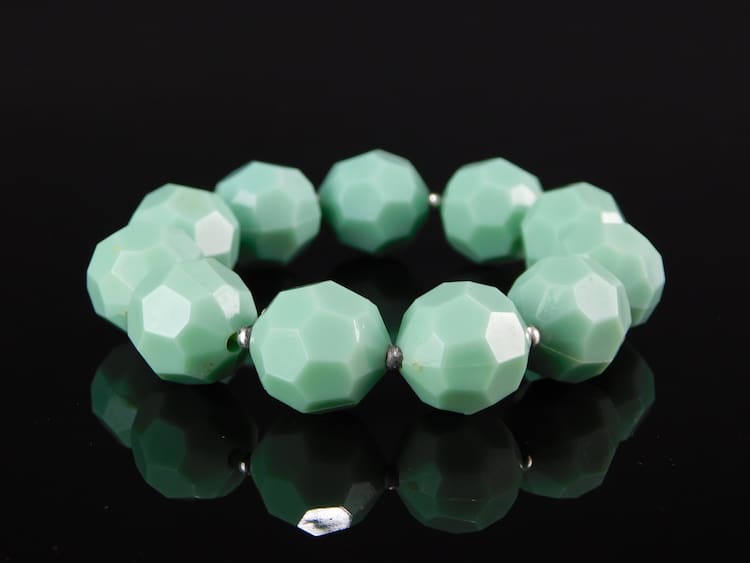 1920’s turquoise celluloid honeycomb ball bracelet.