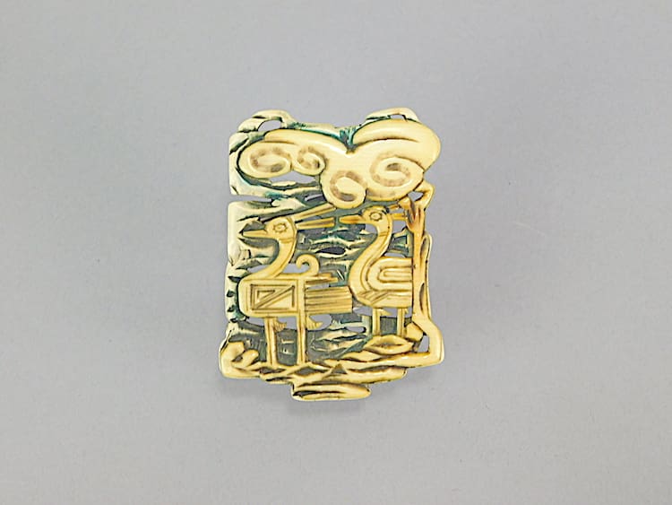 Lovely French celluloid stylised duck brooch, fitted with a safety clasp.