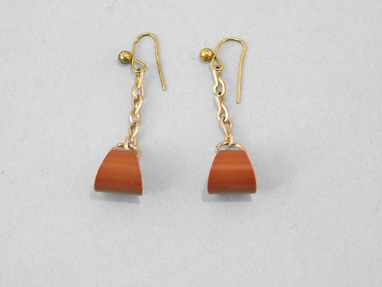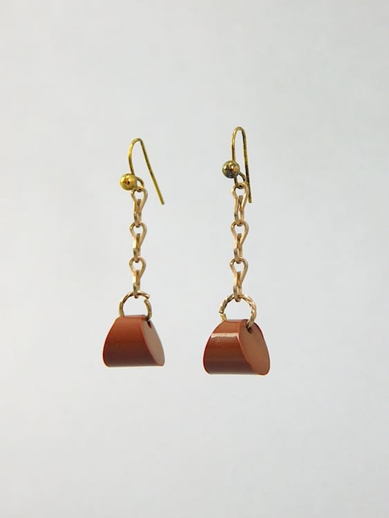 American 1930’s brown celluloid earrings for pierced ears.