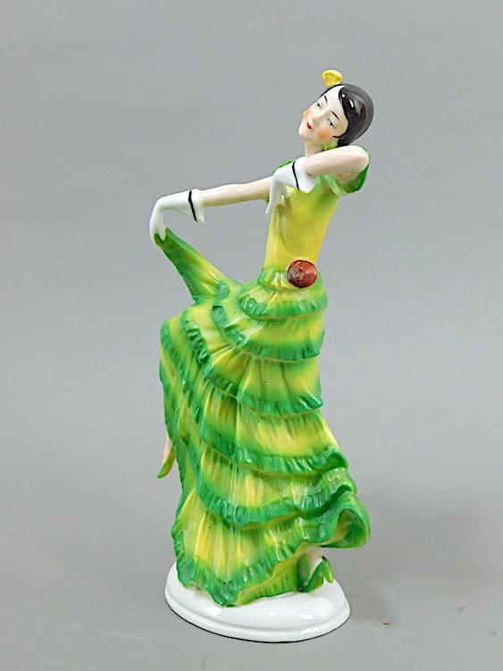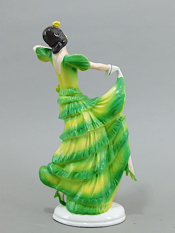 Pretty hand painted Spanish ceramic dancer in shades of pink. No makers marks but probably German.