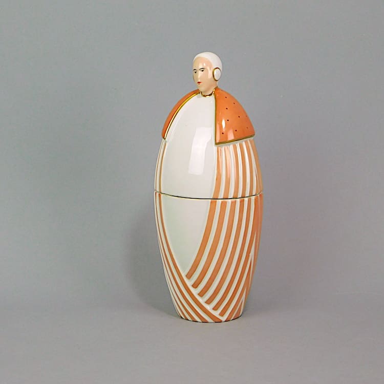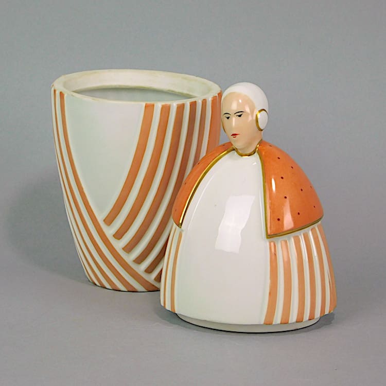 French ceramic lady box, very much Robj in style but this one bearing many other markings to the base. Made in France, SLP Limoges France and another indistinct mark of a maker.