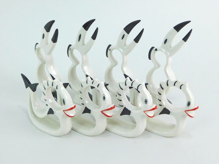 A very stylish set of 8 ceramic napkin holders, marked foreign underneath.